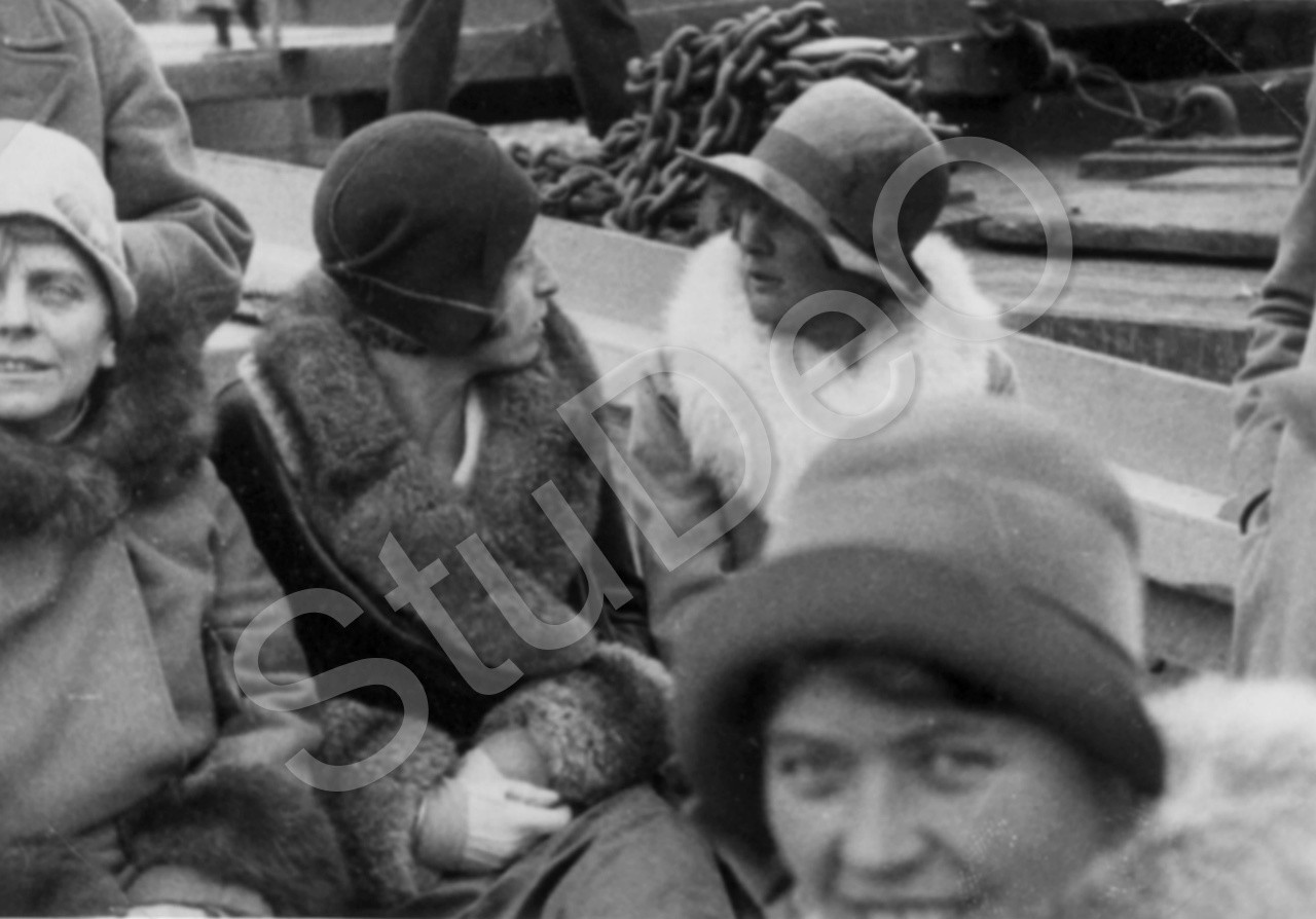Beschreibung: Emdentage. Fahrt zum Kreuzer Emden. Frau Köppen, Annemarie Beelitz, Erika Simon-Eberhard und vorn: Frau v. Egidy.