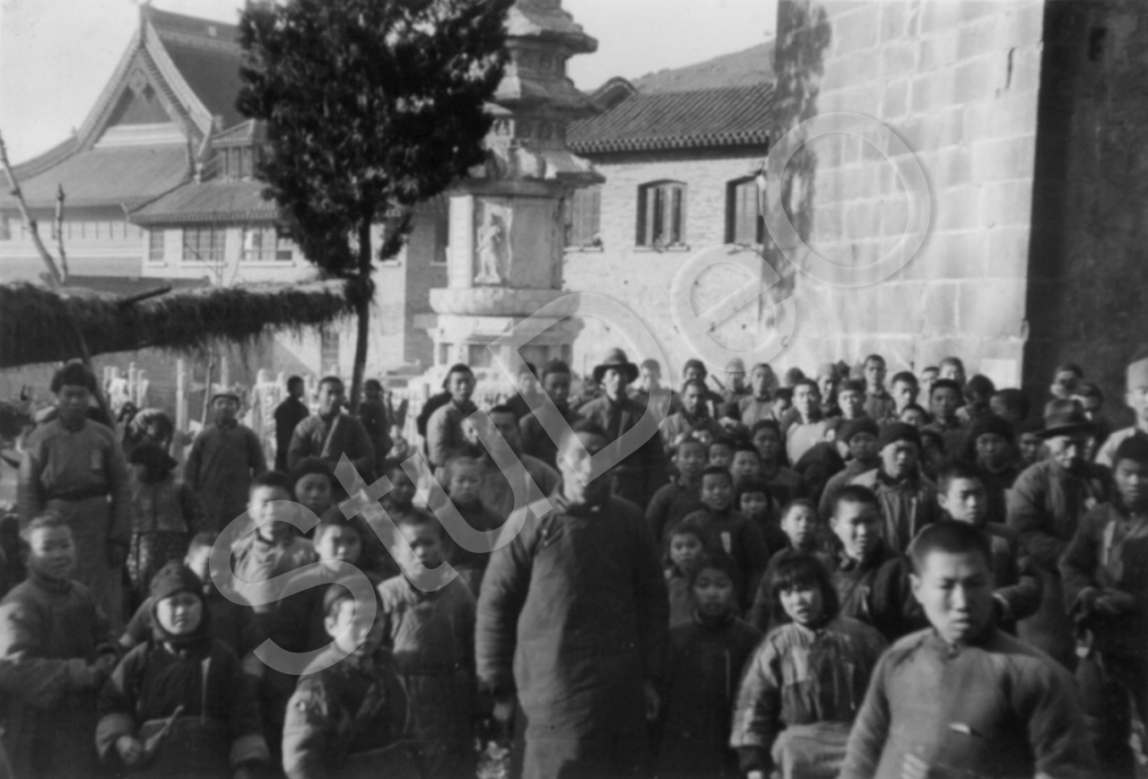 Beschreibung: Chinesischen Flüchtlinge schutzsuchend in einem Tempel in der Bergen um Nanking, nach dem japanischen Angriff auf Nanking am 12.12.1937.