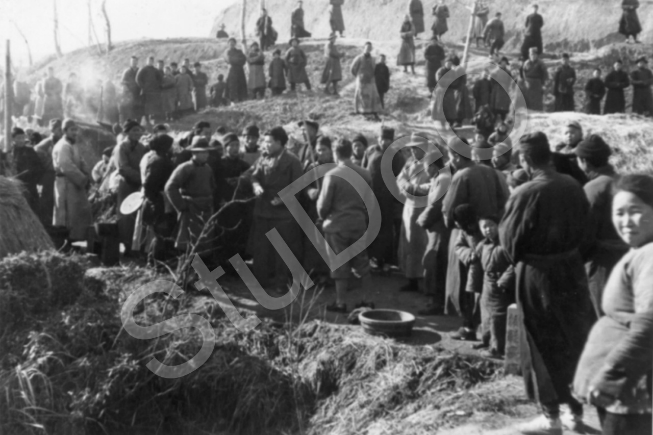 Chinesischen Flüchtlinge strömen Mitte Dezember 1937 auf das Gelände der Kiang Nan Cement Works in Hsi Sha Shan.