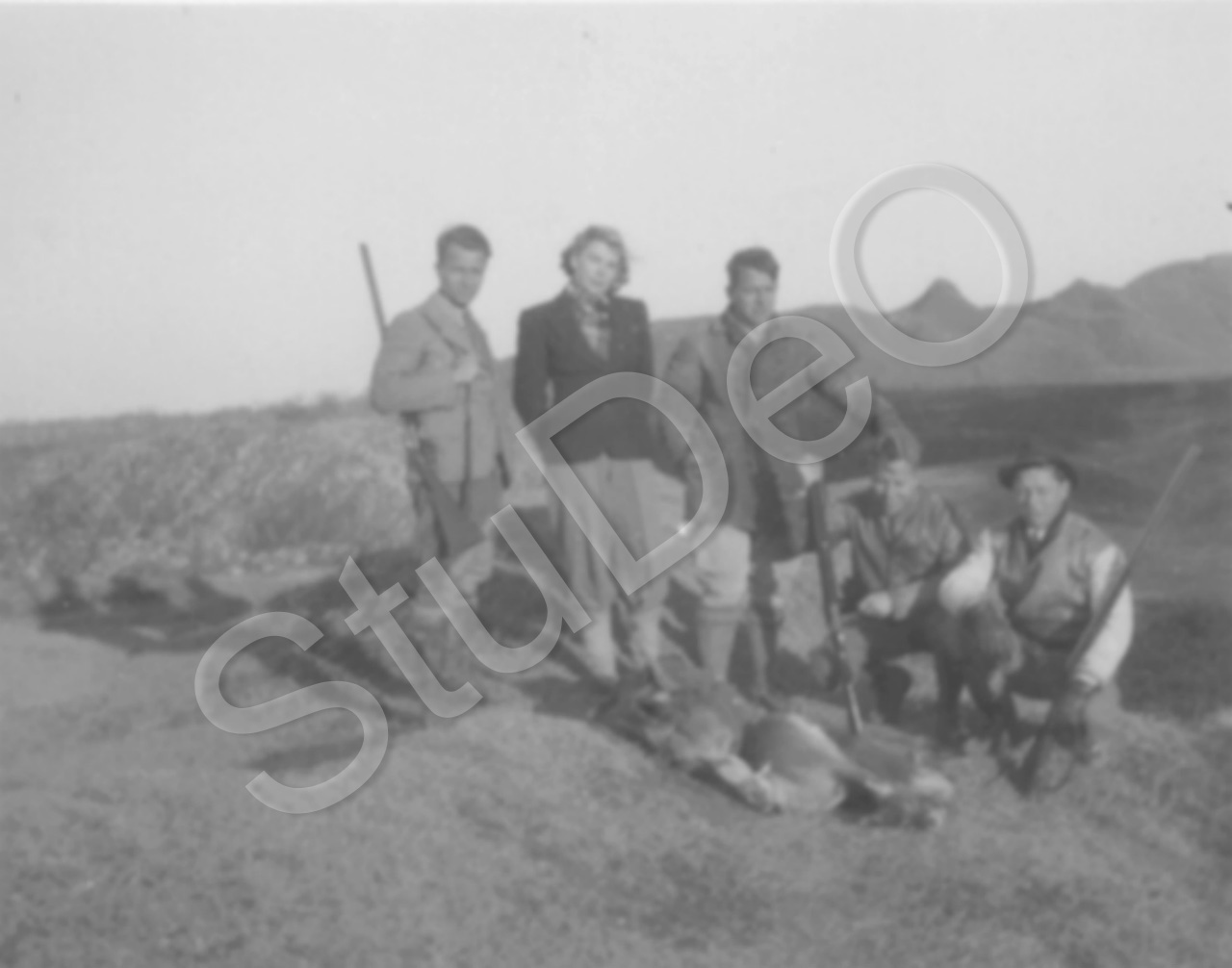 Beschreibung: Otto Günther, Edith und Karl Günther, Günther Schulz, Kolja Podchivaloff mit 3 Yangtze-Rehen.