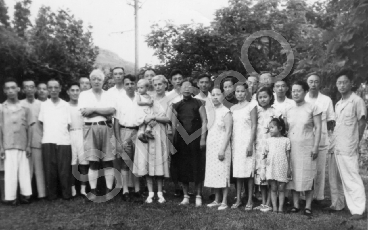 Beschreibung: Belegschaft und Diener der Kiang Nan Cement Works in Hsi Sha Shan am 19.08.1950. Vorne Mitte Dr. Karl Günther mit seiner Frau Edith und Tochter Ingrid. Bild vor Abreise von Günthers aus Nanking.