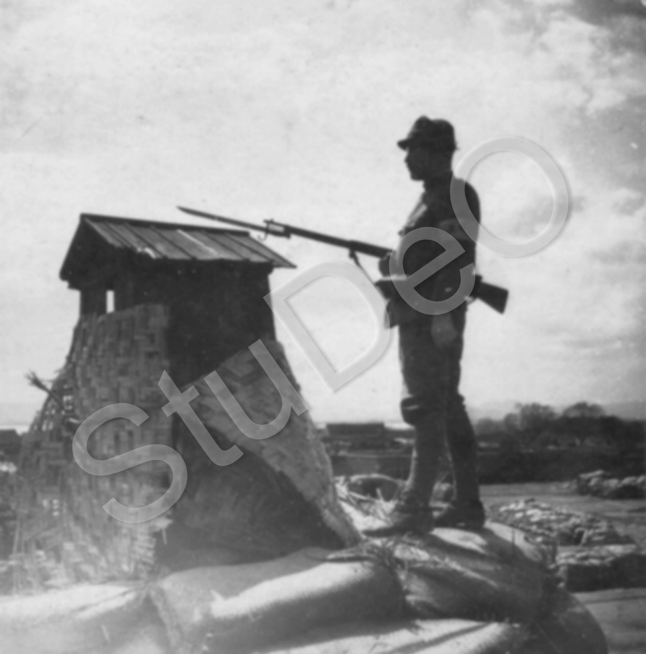 Beschreibung: Japanischer Wachsoldat auf Posten.
