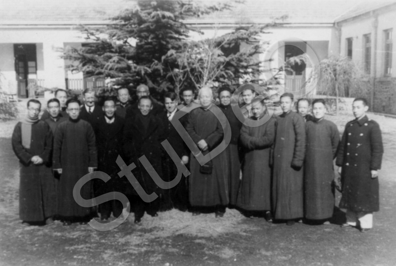 Beschreibung: Belegschaft der Kiang Nan Cement Works in Hsi Sha Shan. In der Mitte Dr. Karl Günther, 3.v.re. Lao Shen.