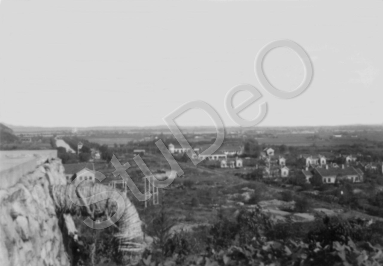 Beschreibung: Sicht auf Teil des Geländes Kiang Nan Cement Works in Hsi Sha Shan. Vermutlich die Büro- und Wohnhäuser. Im Hintergrund der Yangtse.