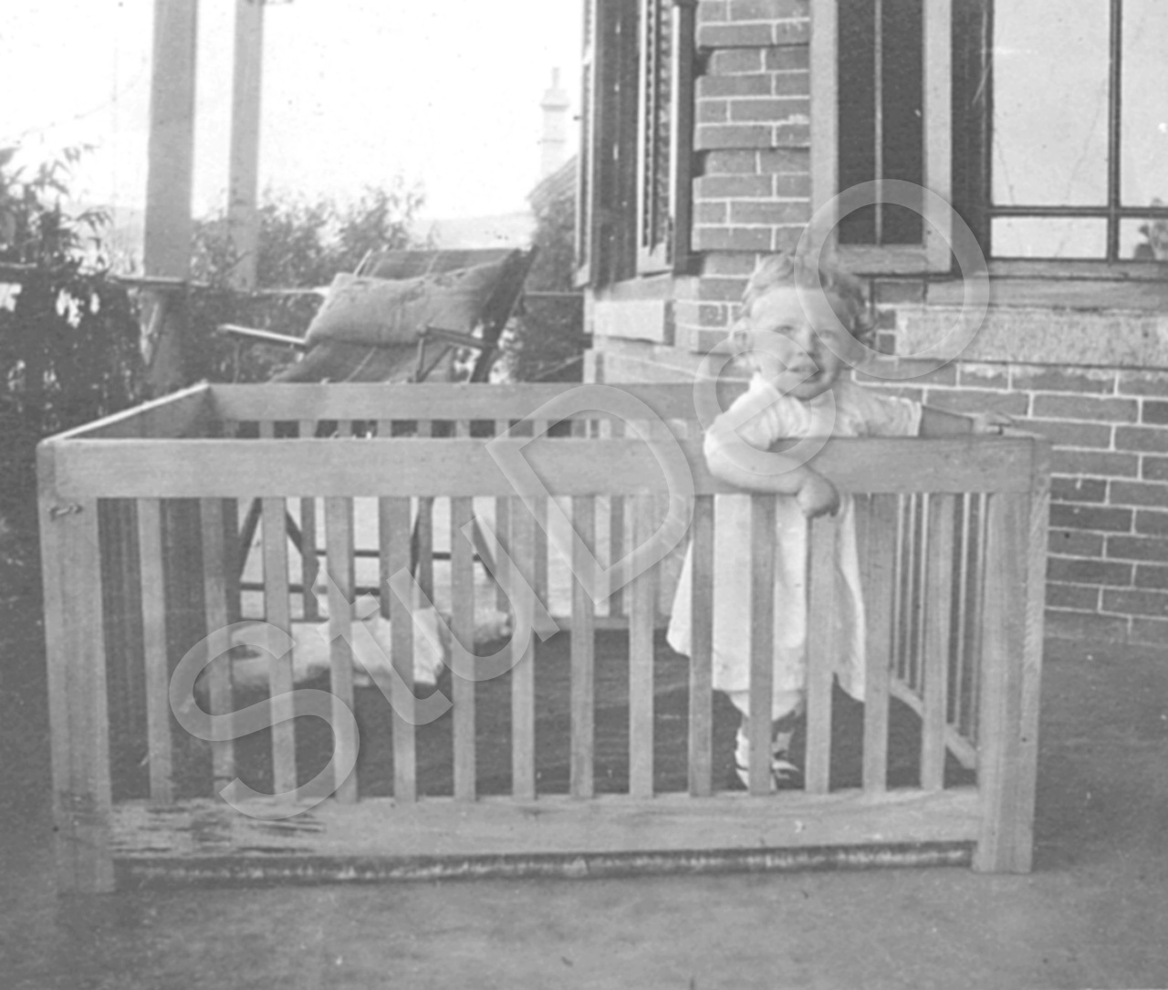 Beschreibung: Karl August Balser jr. im Laufstall.