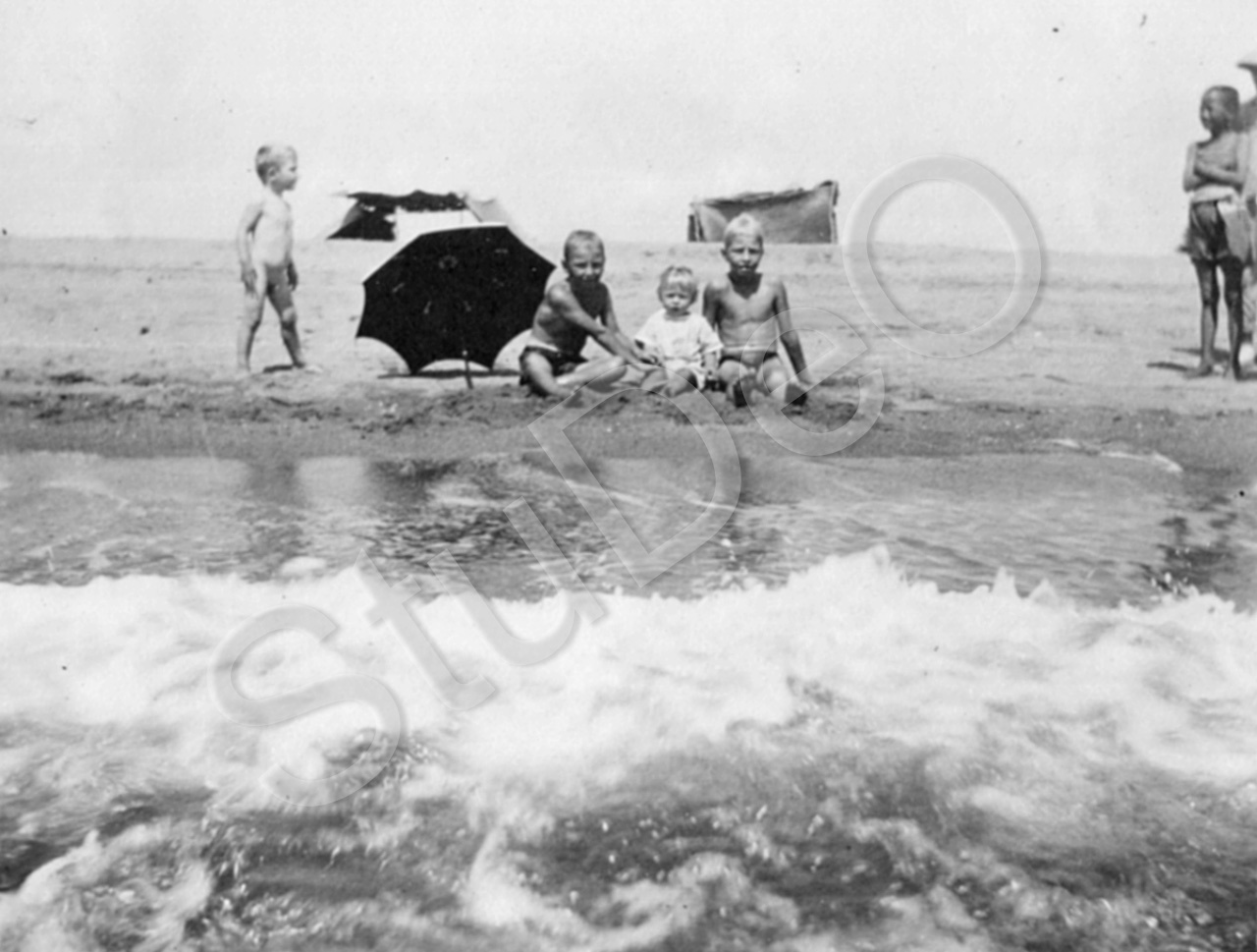 Beschreibung: Balser-Kinder am Strand.
