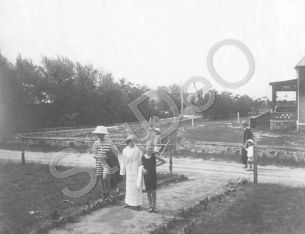 Beschreibung: Die Geschwister Richard Otto, Paul Rupprecht und Barbara Gerngroß in Badeanzügen vor dem Haus in Peitaiho (Beidaihe, 北戴河区); Rupprecht Gerngroß (*21.6.1915 Shanghai - 25.2.1996 Deisenhofen b. München) führte am 27.4.1945 als Hauptmann der Wehrmacht die „Freiheitsaktion Bayern“ an, die am 27.4.1945 putschte, und damit die Ausführung des Nero-Befehls für München verhinderte und die Befreiung des KZ-Dachau unterstützte.