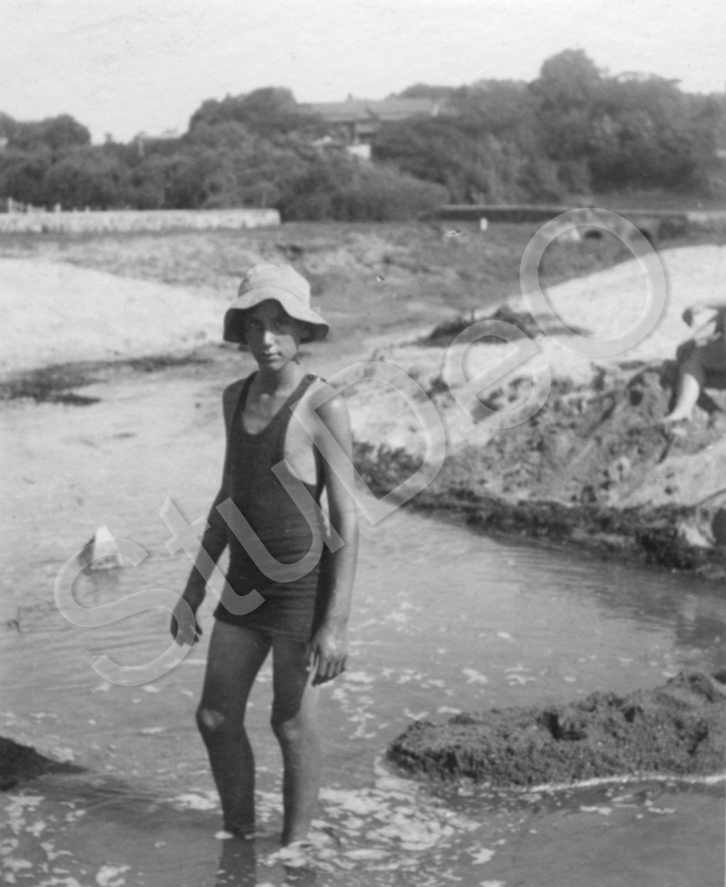 Beschreibung: Richard Otto Gerngroß in Rocky Point an der Mündung eines Baches ins Meer.