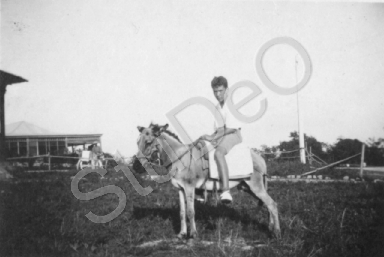 Beschreibung: Richard Otto Gerngroß reitet auf einem Maulesel.