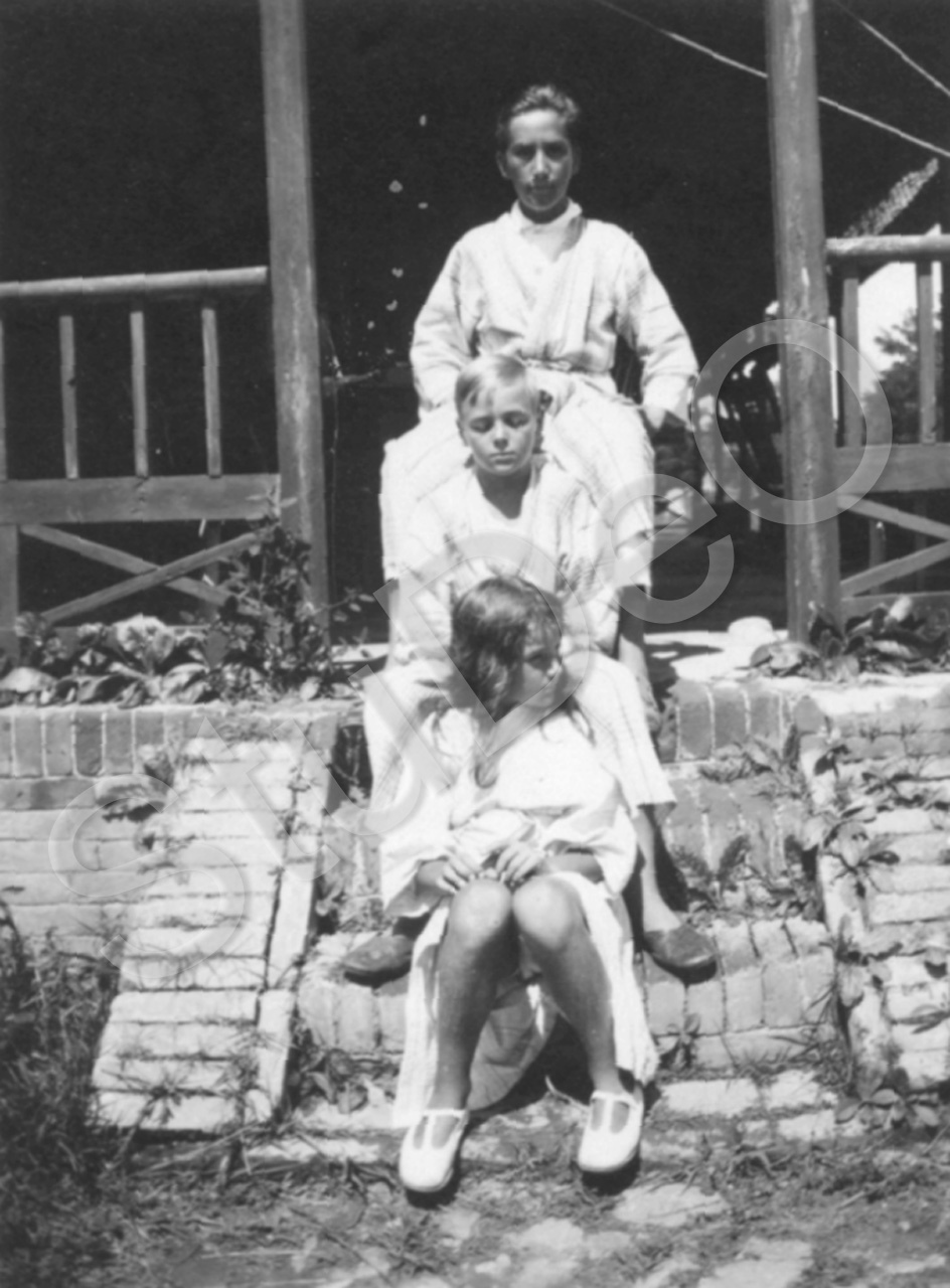 Beschreibung: Von unten nach oben: Barbara, Paul und Richard Otto Gerngroß auf der Hauseinganstreppe.