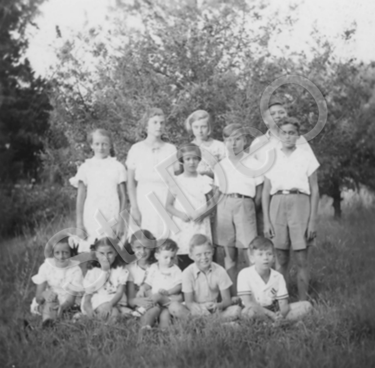 Beschreibung: 9. Geburtstag von Irmchen Marschall am 20.08.1938. Mary Skiodes, Fifi Skiodes, Friedel Heiss, Helmut Klicker, Ursi Marschall, Rolf Klicker, Kurt Klicker, Lulu Lange, u.a.