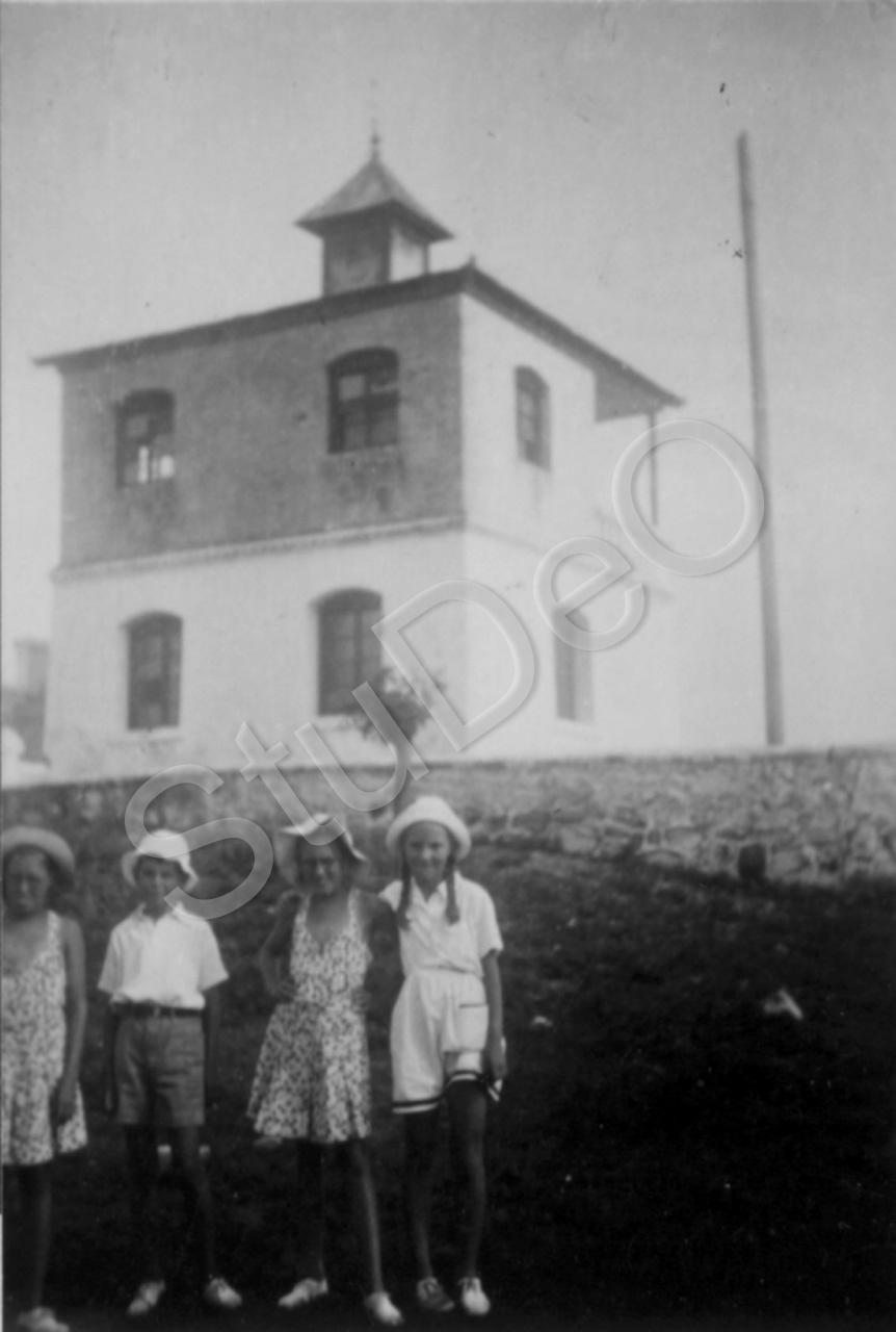 Beschreibung: V.l.n.r. Gerda Lück, Edgar Amann, Irmgard Soltau, Inge Lück vor dem „Lighthouse“ am Lighthouse point.