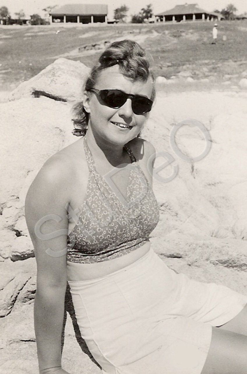 Beschreibung: Renata Steenken am Strand. Steenkens wohnten im Strandhaus der Familie Paul Wilm.