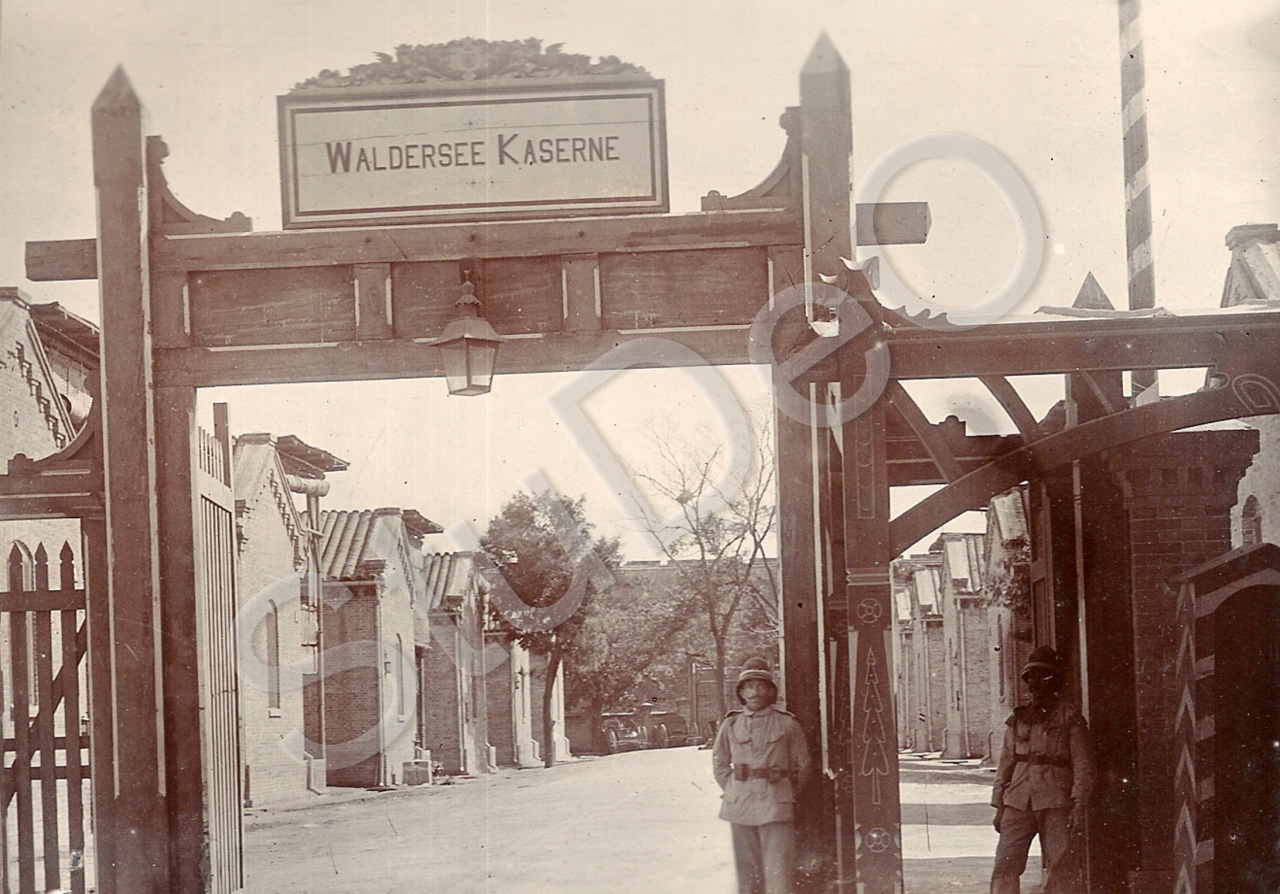 Beschreibung: Walderseekaserne der „Artillerie Gesandtschaftsschutzwache Peking des Ostasiatischen Detachements“.