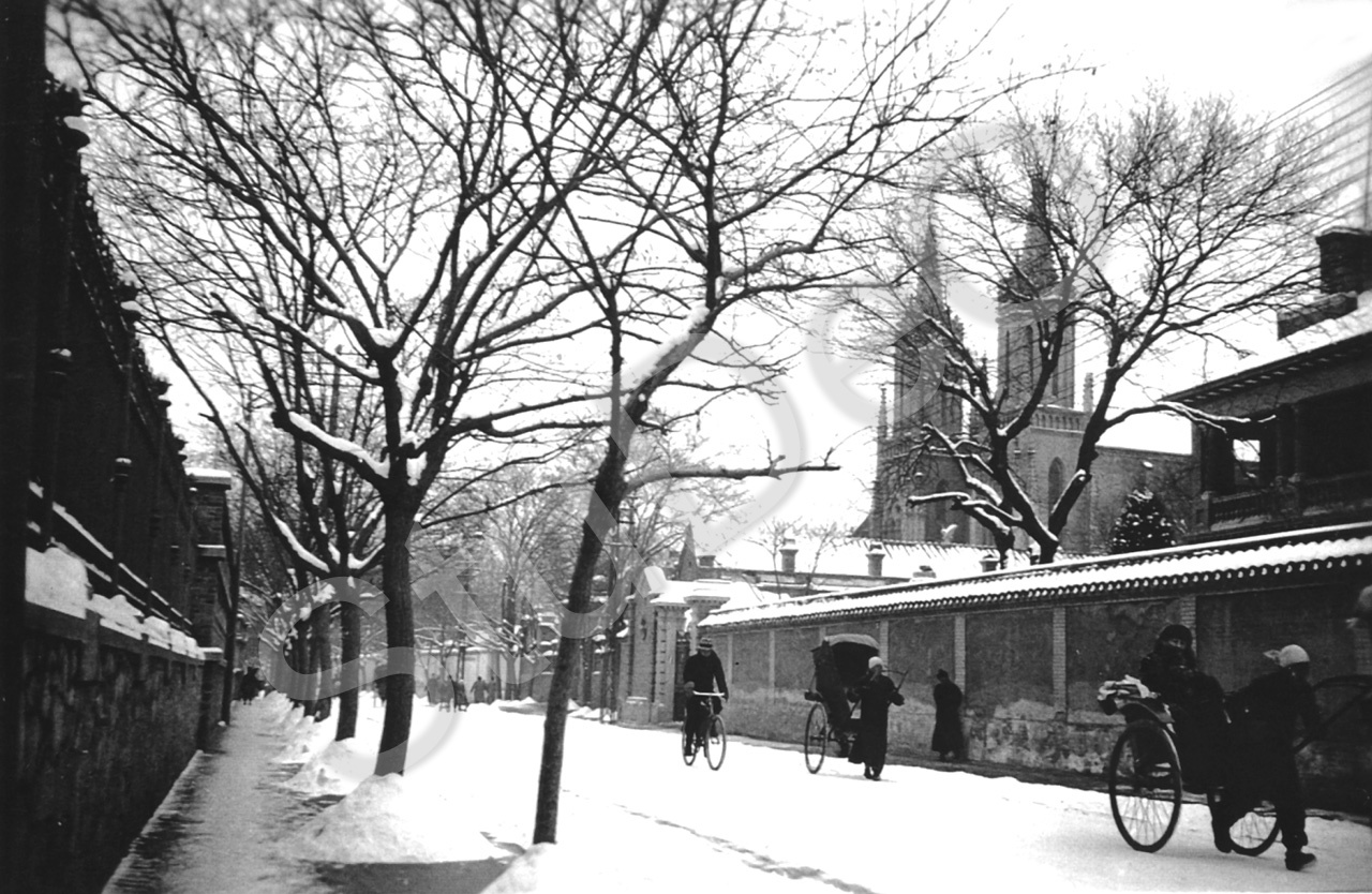 Beschreibung: Legation Street im Gesandtschaftsviertel in Peking.Türme der französ. Kath. Kirche St. Michael.