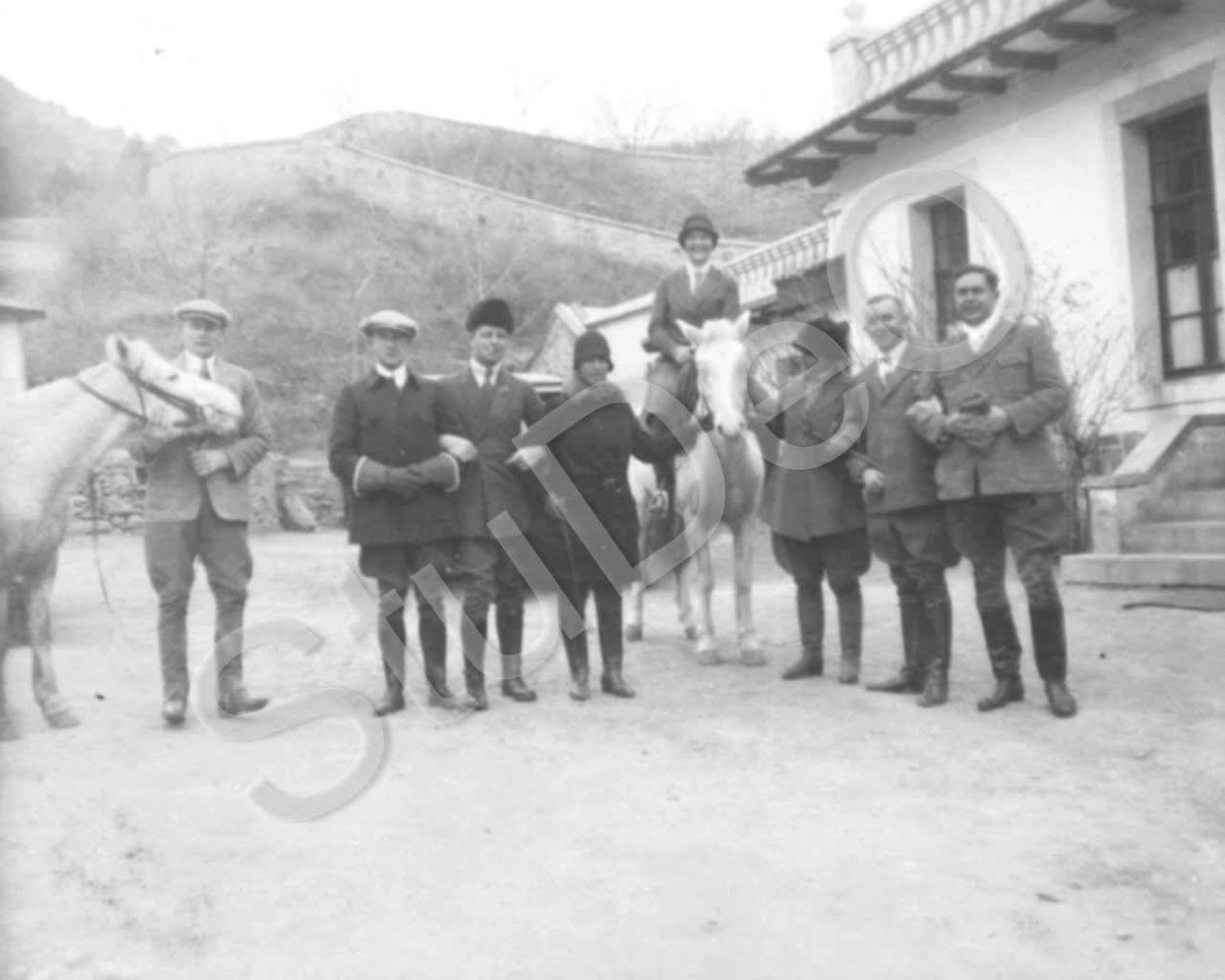 Beschreibung: Reitergruppe, ganz rechts Otto Hauer. „Reitsausflug z. Edelsteinpagode“.
