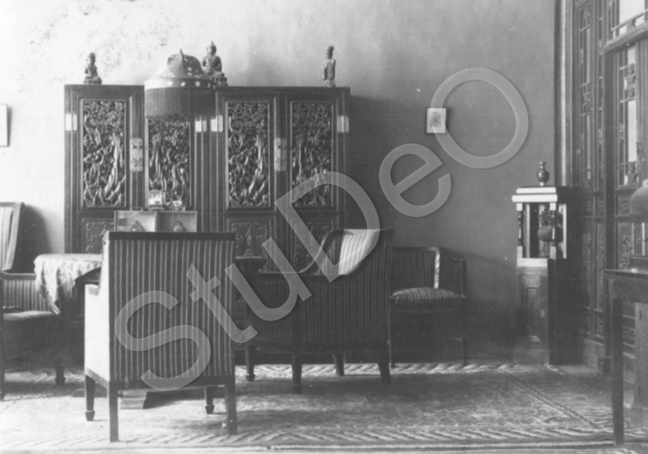 Beschreibung: Wohnzimmer von Otto Hauer in Peking?