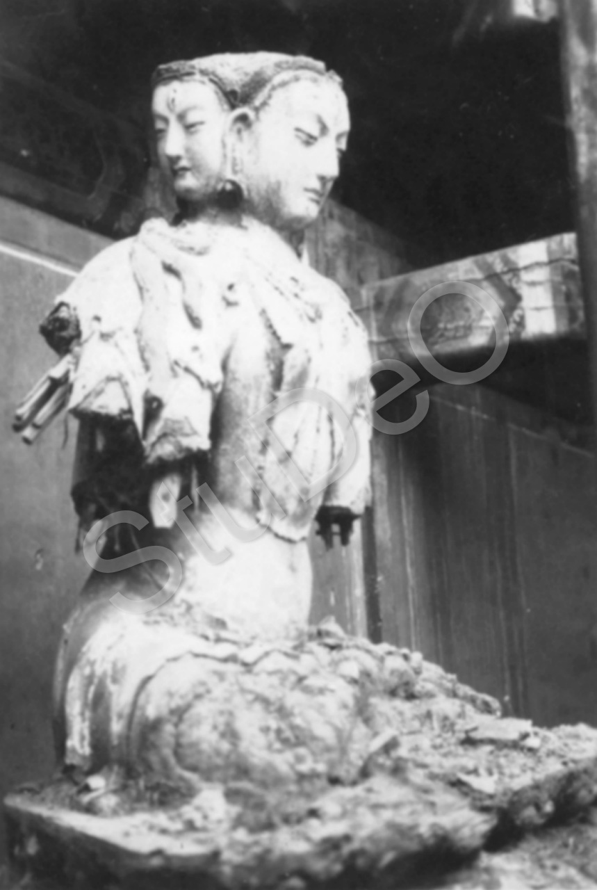 Beschreibung: Götterfigur mit 2 oder 3 Gesichtern in einer Tempelruine. S. auch P3043.