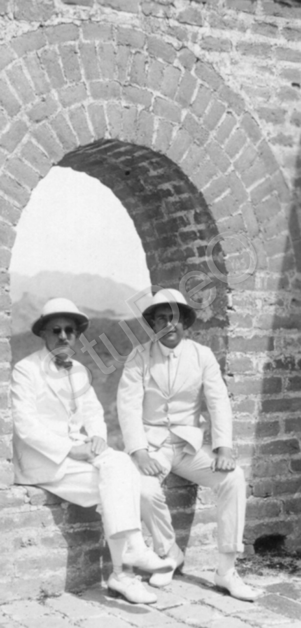 Beschreibung: Brackenhausen, links, und Otto Hauer auf der Großen Mauer  ver­mut­lich bei Badalin.