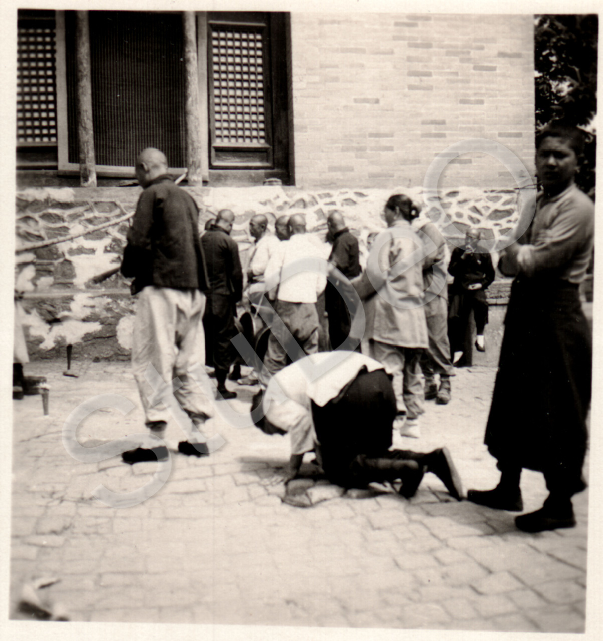 Beschreibung: Auf einem Tempelhof Anbetung der Schlangen am Morgen, Regen bittend. Begeg­nungen beim 8tägigen Ausflug von Schülern der Deutschen Schule Tientisn in die Westberge.