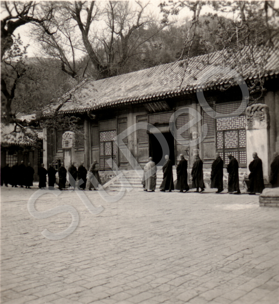 Beschreibung: Mönche gehen betend in einen Tempel. Begeg­nungen beim 8tägigen Ausflug von Schülern der Deutschen Schule Tientisn in die Westberge.