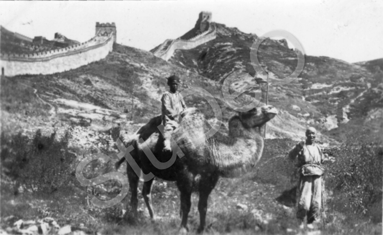 Beschreibung: Am Fuße der Großen Mauer. Ein Kamelreiter.