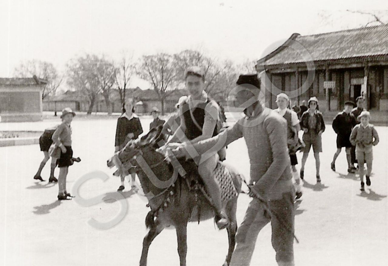 Beschreibung: Eselreiten im Sommerpalast. Schülerausflug im Frühling.