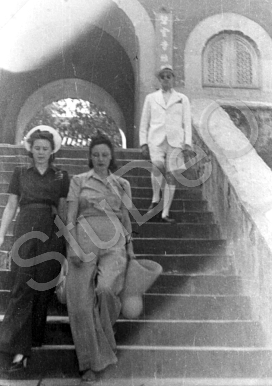Beschreibung: Elvira Emme, Frau Boujanovski und Baron Fuchs im Sommerpalast westlich von Peking, auf Hochzeitsreise der Emmes Anfang Oktober 1941. Fritz Emme schreibt: In diesem Sommerpalast erfrischte sich der Kaiserlich-chinesische Hof während der heißen Jahreszeit, bis 1911. Ist seitdem als Volkspark immer gut in Stand gehalten worden.