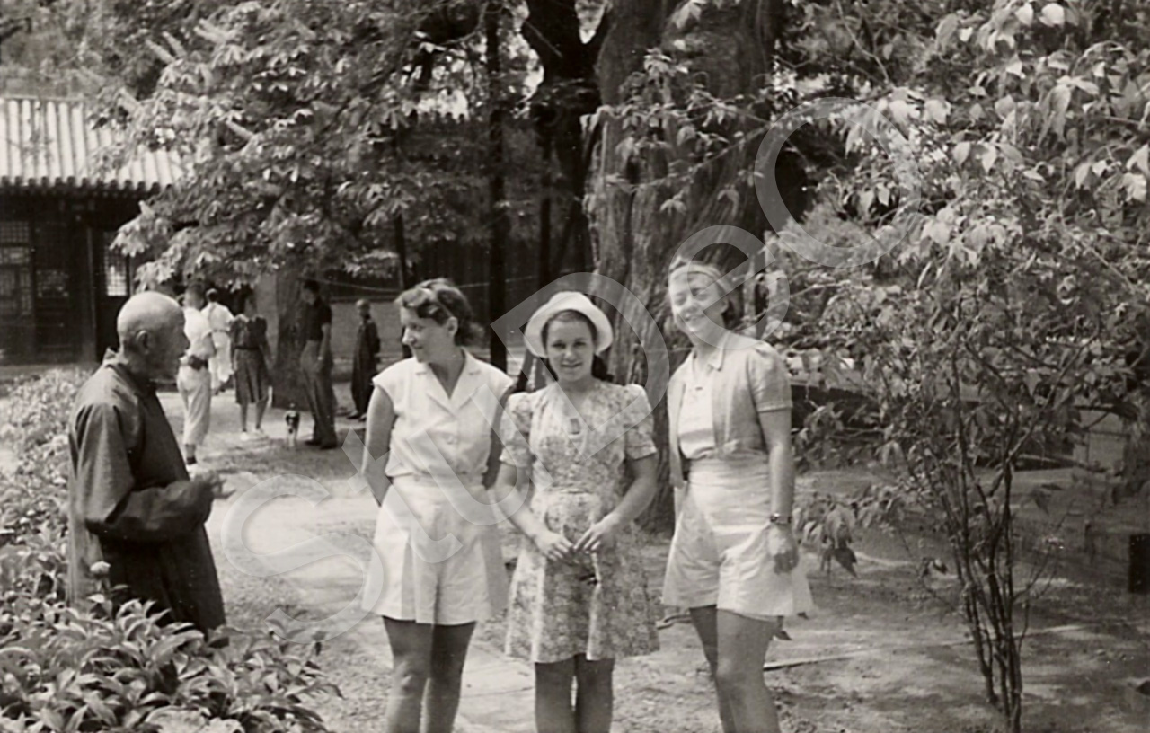 Beschreibung: Else Severitt mit Tochter Doris u. Renata Steenken in einer Tempelanlage.
