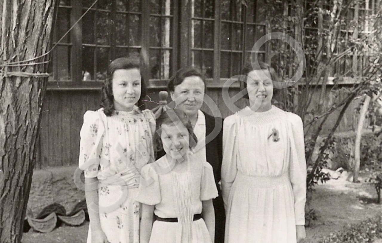 Beschreibung: Konfirmation von Mimi Clemann, ihre Familie  v.li.n.re.: Rosi, Mutter Mary, Marthe, Mimi (Annemarie) am 11.04.1941.