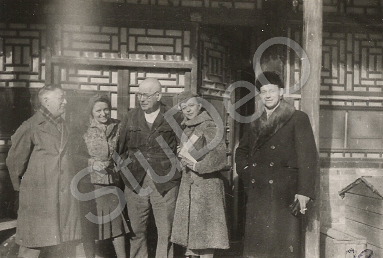 Beschreibung: Zu Besuch bei Prof. Hundhausen auf der Pappelinsel. v.li. Herr und Frau Severitt, Prof. Vincenz Hundhausen, Renata Steenken, Herr Hachmeister (Lehrer aus Tientsin).