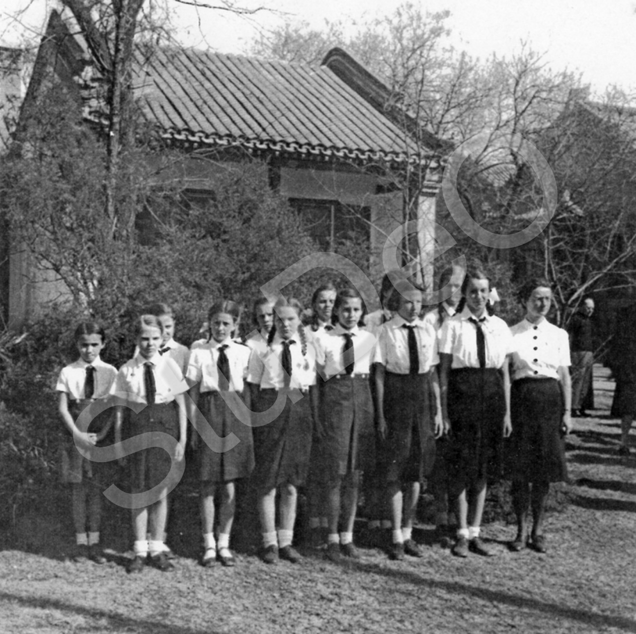 Beschreibung: Heldengedenkfeier in der Deutschen Botschaft. v.li.n.re.: Käthe Olthafer, Marianne Jährling, Marthali Cleman, Mania Stael v. Holstein, Eva Dello, Hedi Ruck, Ruth Boehler, Luise Olthafer, Irmgard Marschall, Rosi Clemann, Anneli Wilm, Ursula Marschall, Ilse Martin. (*0079).