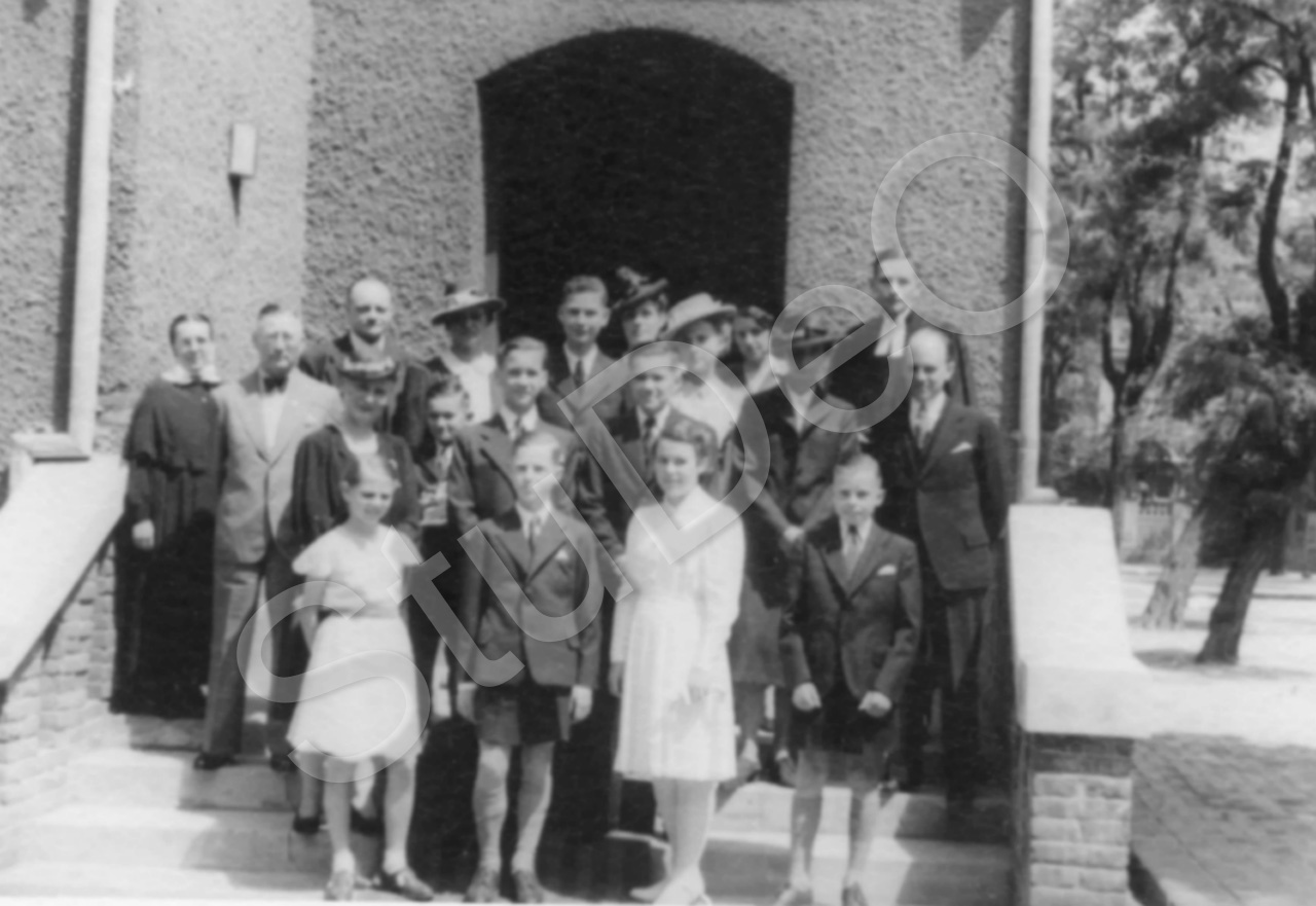 Beschreibung: Konfirmanden (s. P1230) mit Eltern und Geschwistern vor der Dt. Kapelle Peking.