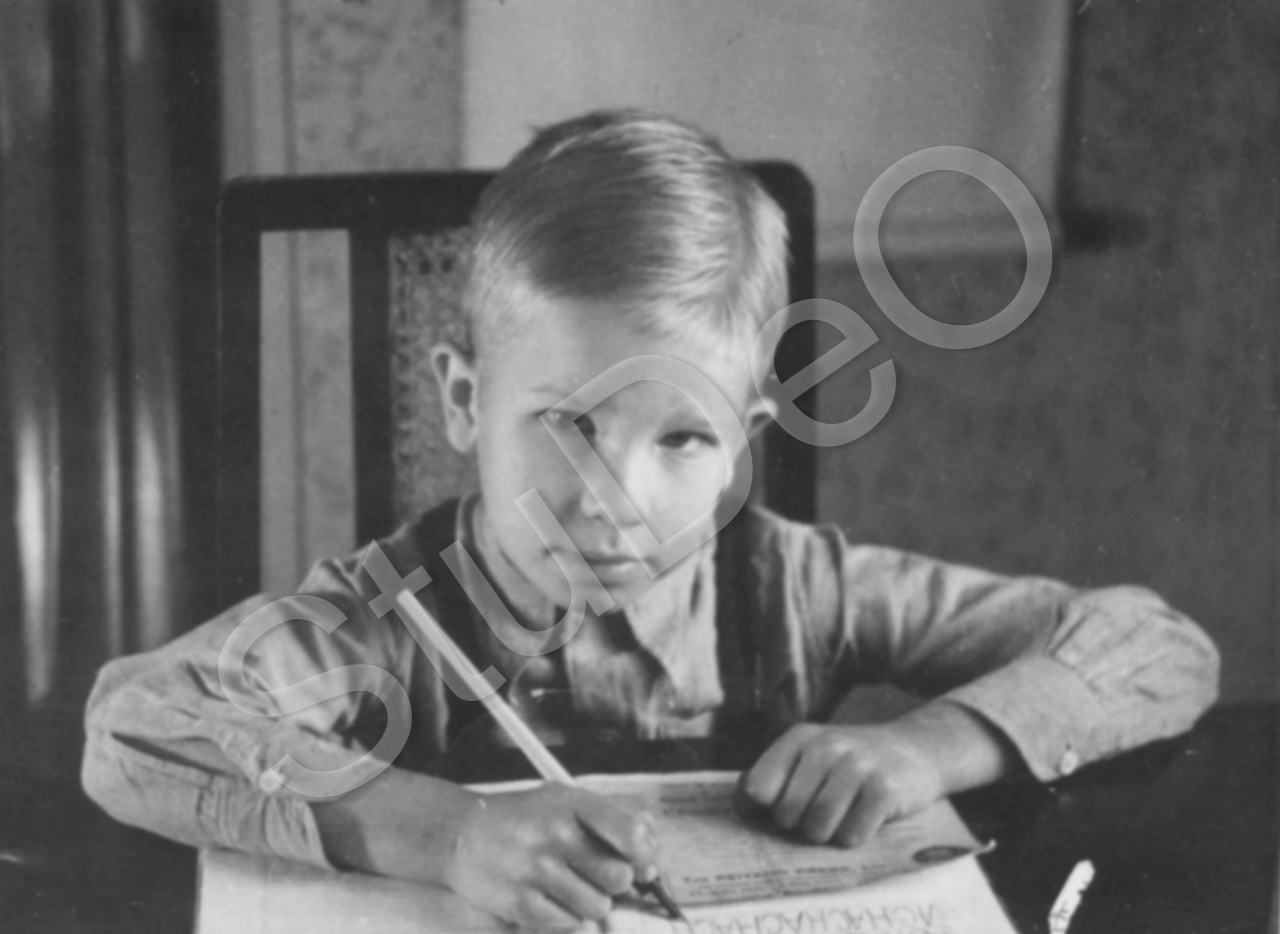 Beschreibung: Wolgang Günther mahlt seine ersten Buchstaben, er war in Peking in der 1. Schulklasse.