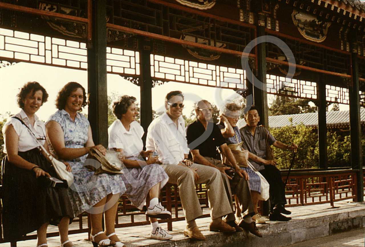 Beschreibung: Die„12er Bande“ Chinareise. V.l.n.r. Renate und Ursula Jähr­ling,  Elinor Kup­ka, Rudolf Jährling, Max Kupka, Hilde Jährling und Georgi Palta.