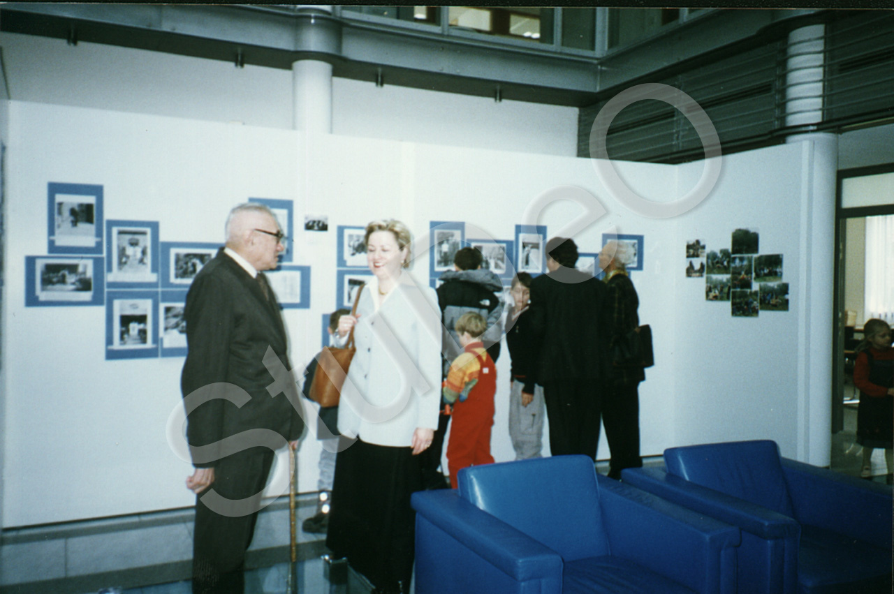 Beschreibung: Die Ausstellung anlässlich des 85 Jahrestag der Gründung der Dt. Ge­mein­de Peking mit Exponaten aus dem Fotoarchiv des StuDeO. Links: Jura Feng.