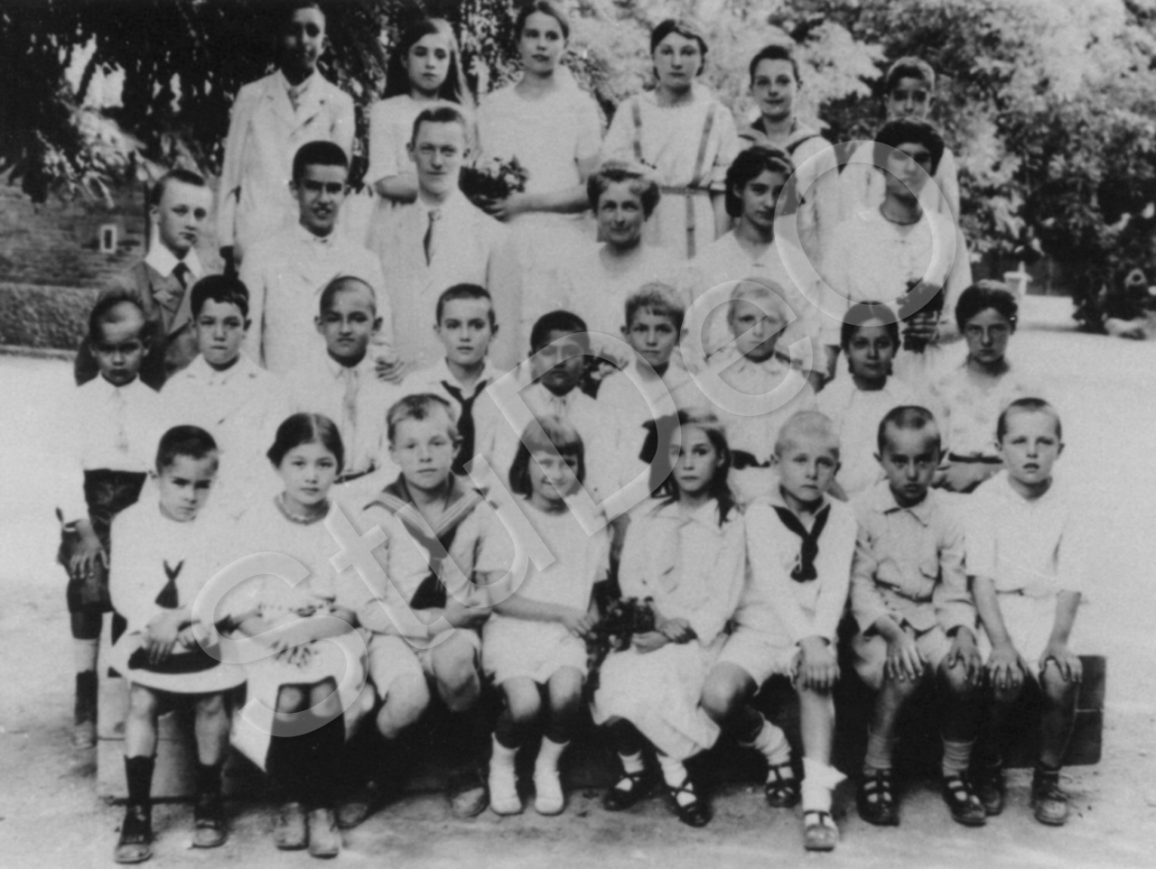 Beschreibung: In der Mitte Lehrerin Lina Holland, Lotte Cordes, Lilo Sterz.