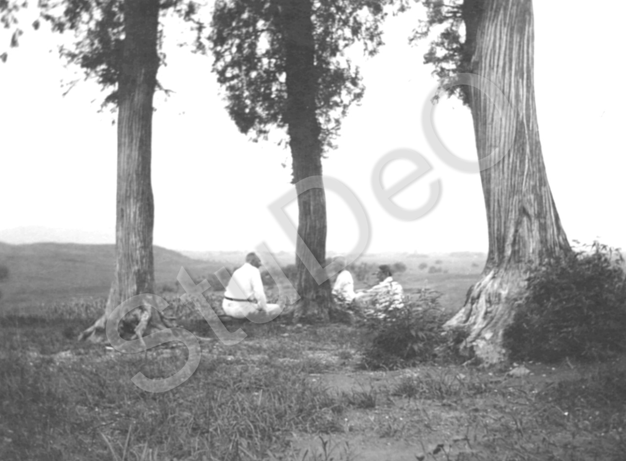 Beschreibung: „Kurt, Karli u. Herr Friedrich auf dem Babaushan (8 Köstlichkeit-Hügel)“.