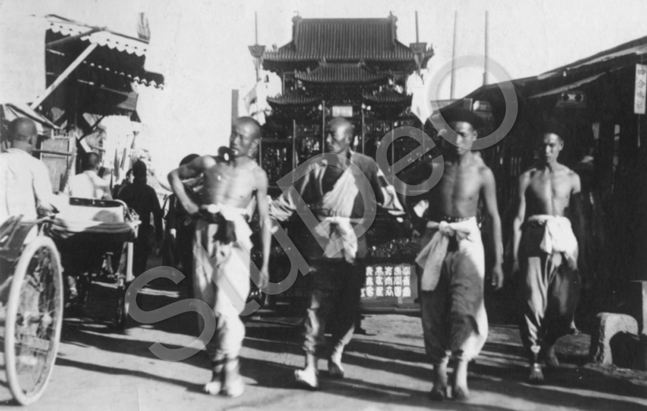 Beschreibung: Träger eines Sänfte in form eines Hauses. Sommer.