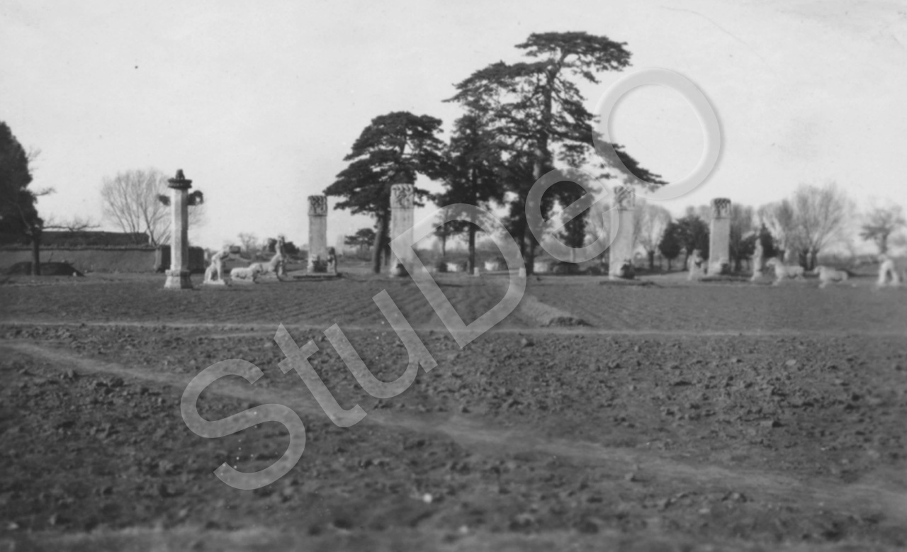 Beschreibung: Stähle und Steintiere auf Acker und Feld. Später säumen sie den Weg zu den Ming Gräbern.