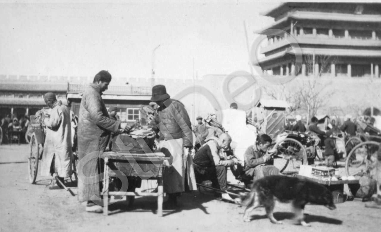 Beschreibung: Garküche, Fahradreparatur, etc. An der Mauer der Verbotenen Stadt.