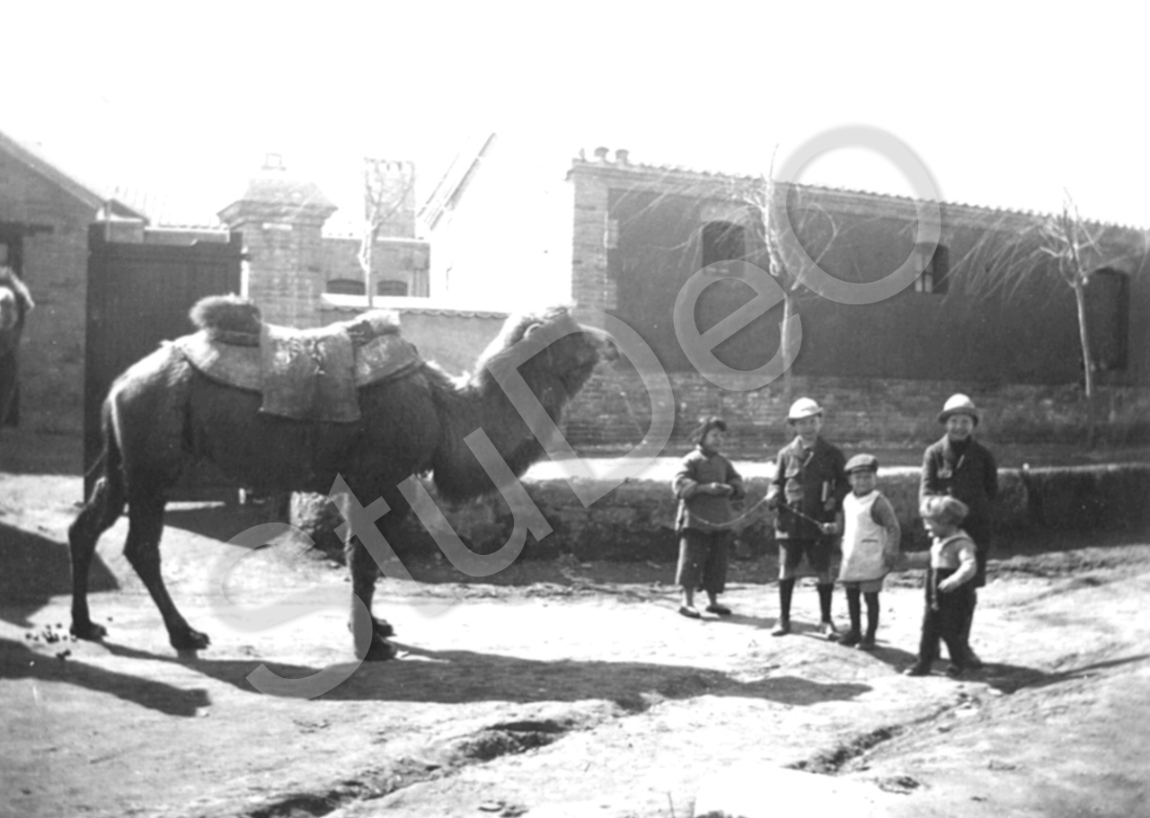 Beschreibung: Balser-Kinder mit einem Kamel.