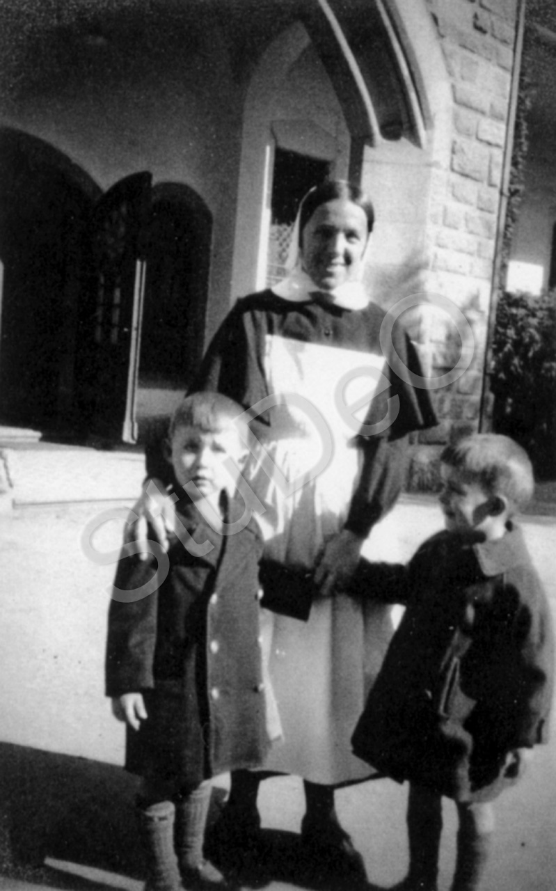 Beschreibung: Schw. Julie mit Jürgen und Peter, Söhne von Dr. med Kurt Stickforth.