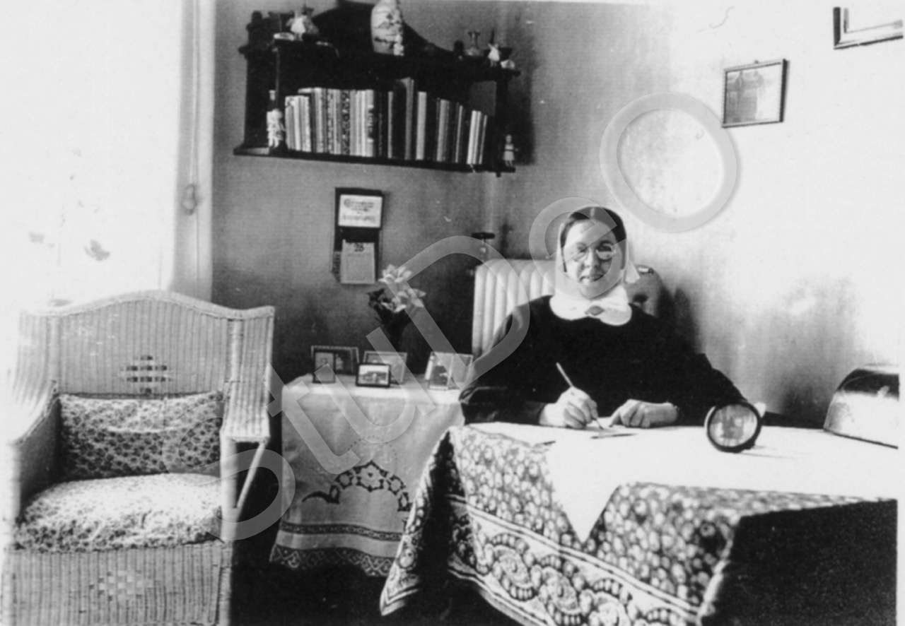 Beschreibung: Schw. Julie Schuler in ihrem Zimmer im Schwesternhaus.