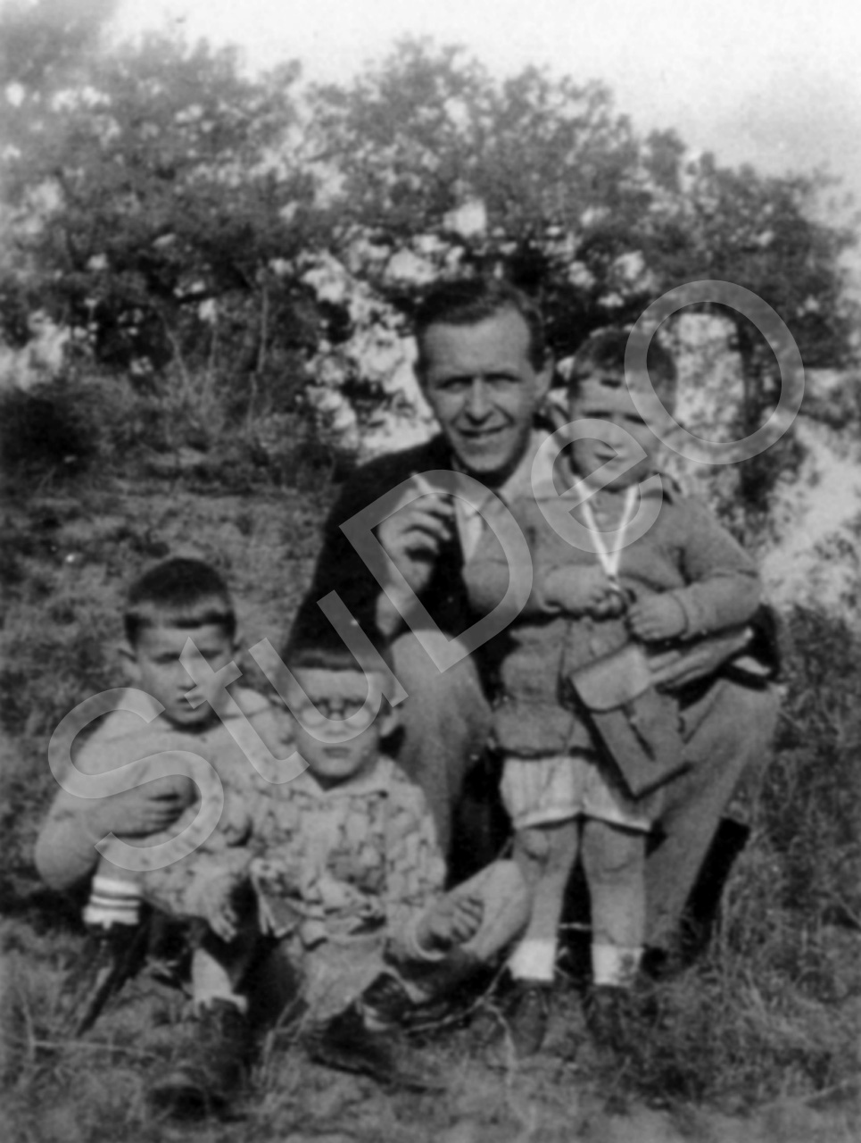 Beschreibung: Arzt Dr. Kurt Stickforth mit drei Söhnen.