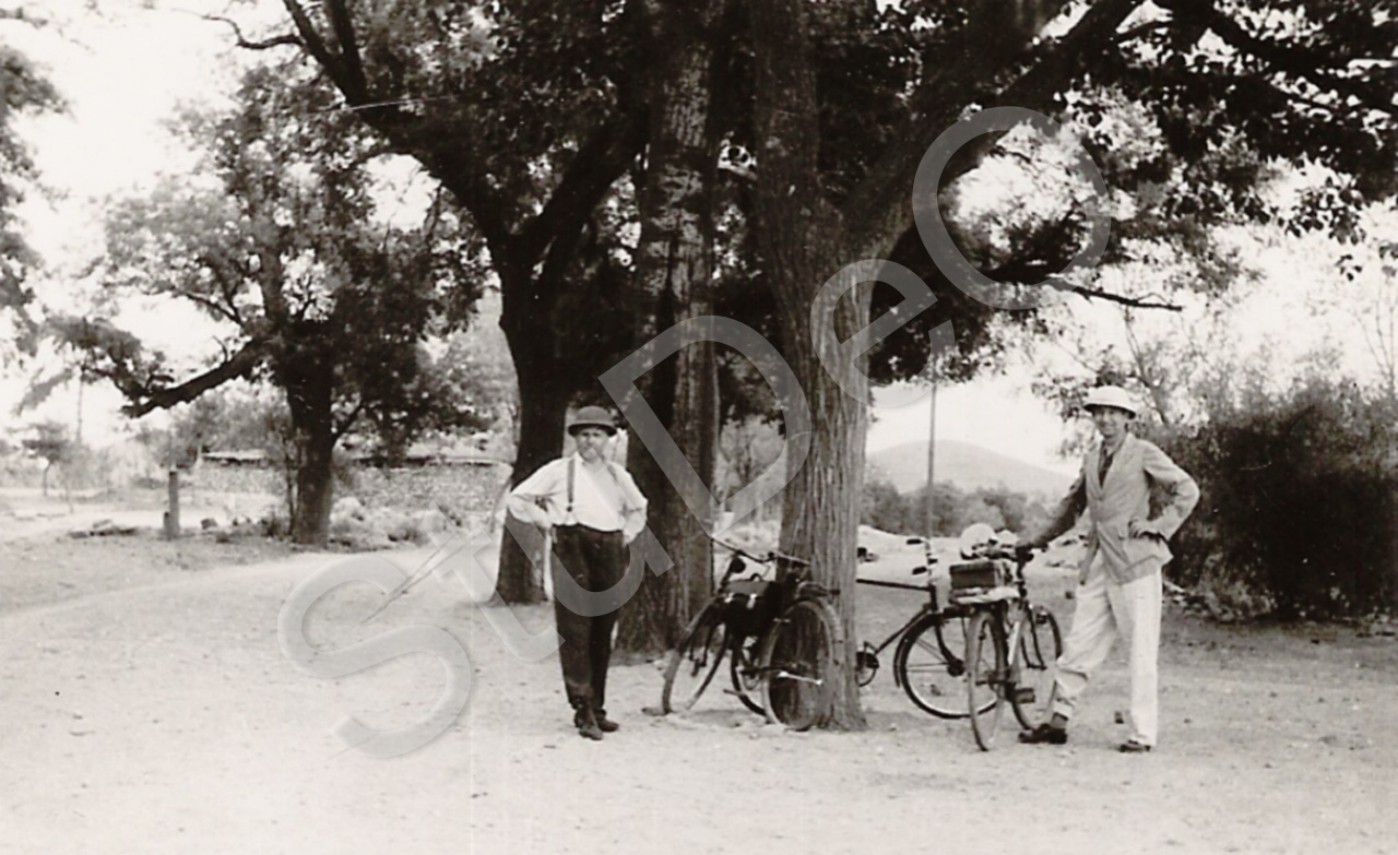 Beschreibung: Auf Radtour in die Landschaft Nordchinas mit dem deutschen Missionar Heinrich Ruck li., Herr Wessel, war hoher Offizier der Heilsarmee.