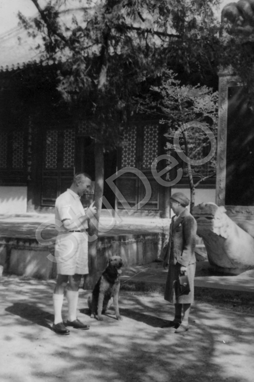 Beschreibung: Günther Huwer und  ? vor dem Tempel „Wu Pao Sse“.