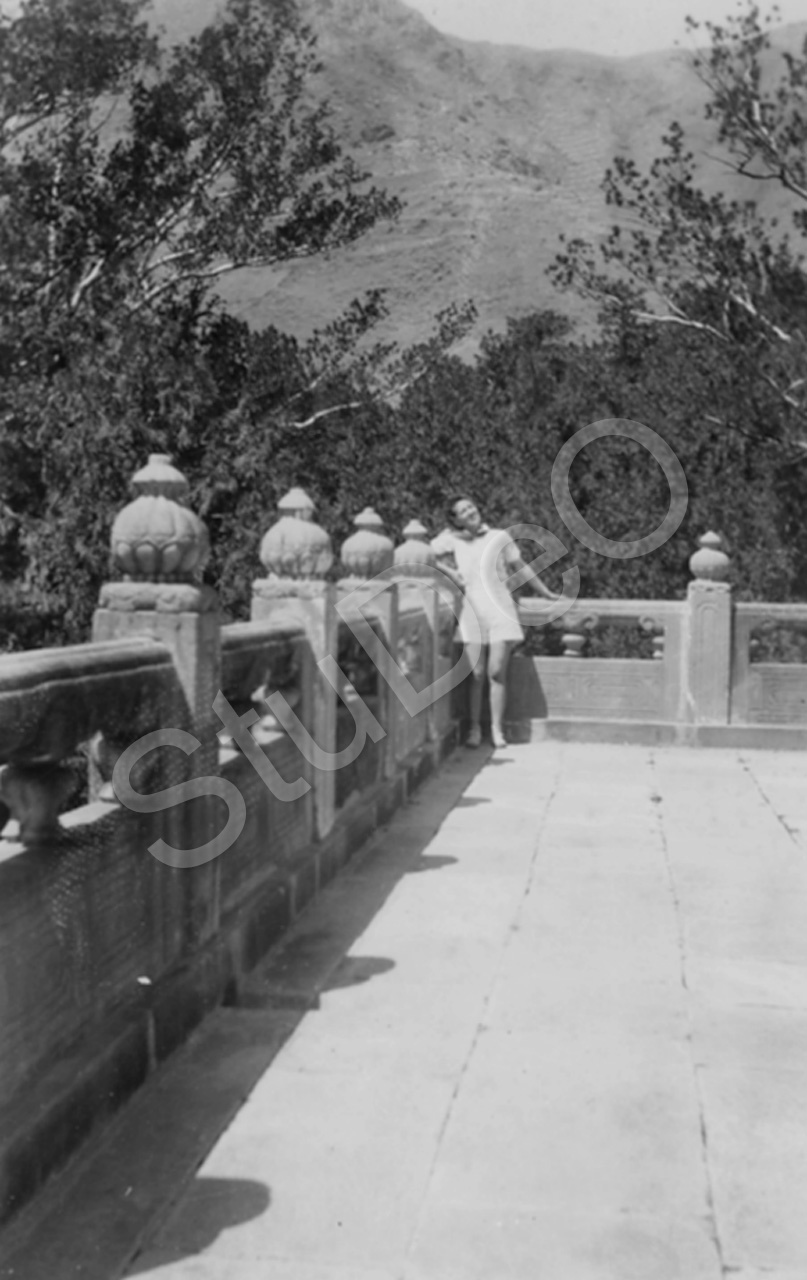 Beschreibung: Terrasse vom Tempel Bi Yün Sse (Tze).im NW Pekings. Im Hintergrund Westberge. Emilie Thürmer.