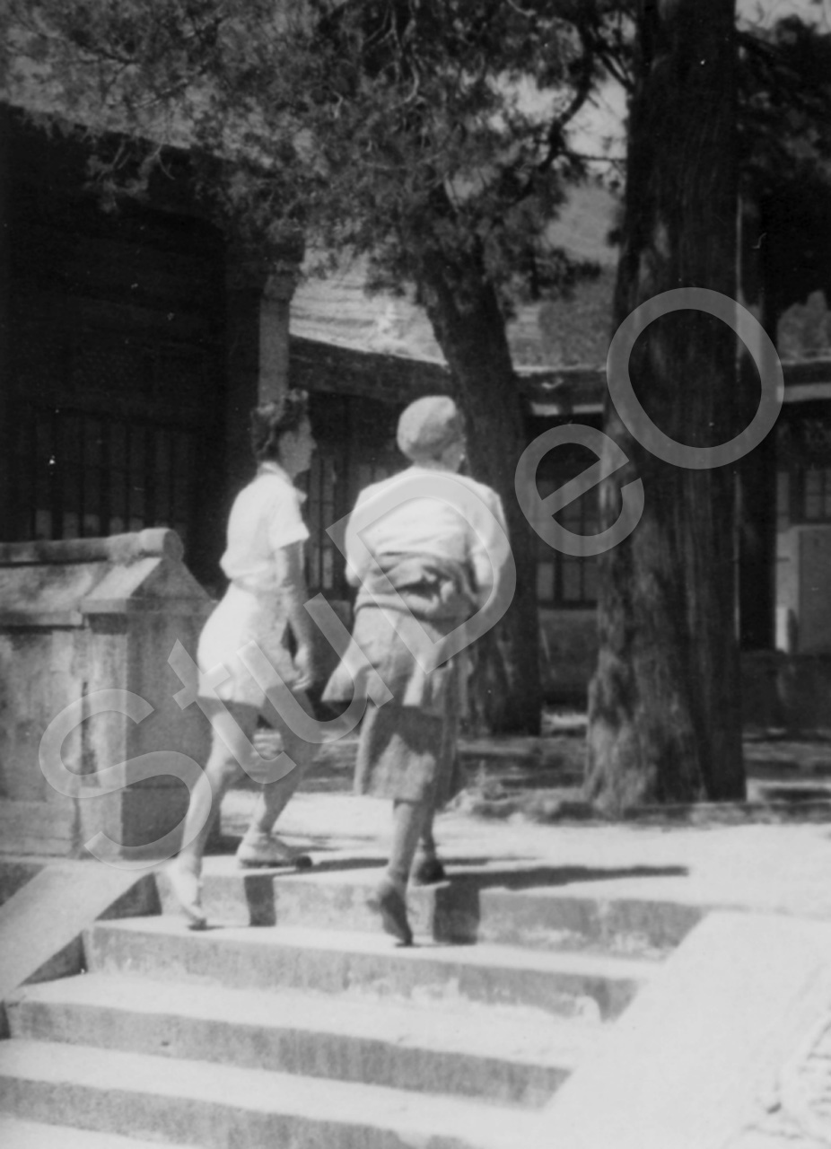 Beschreibung: Tempel Pi Yün Sse (Tze). Auf der Treppe Emilie Thürmer und ?.