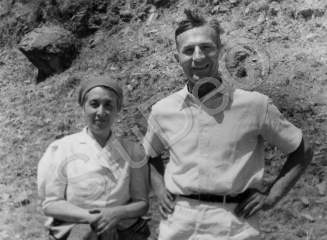 Beschreibung: Ethnologin Dr.? und Prof. Günther Huwer bei einer Wanderung.